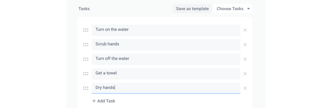 Track step-by-step task completion. Add individual tasks in the center panel. During data collection, mark those that were completed.