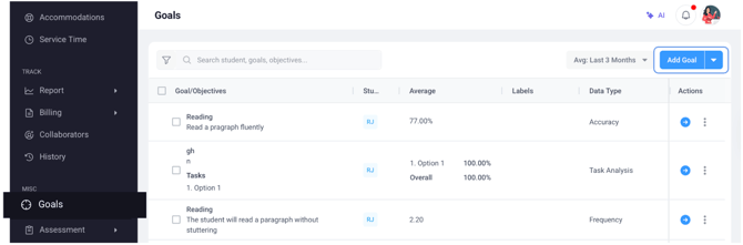 ✍️ Tip: You can also add objectives under the main goal. Once all goal and objective details are entered, click Save Goal to add the goal to the student’s profile.