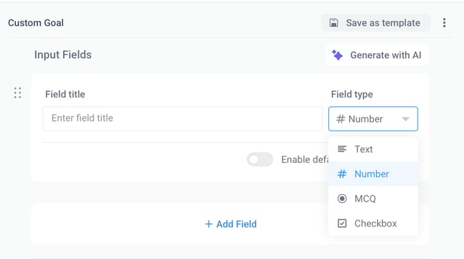 📒 Note: This data type can also be used for goals that require tracking via multiple choice questions.