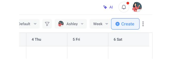 - Click the Create button, or simply click anywhere within the calendar.