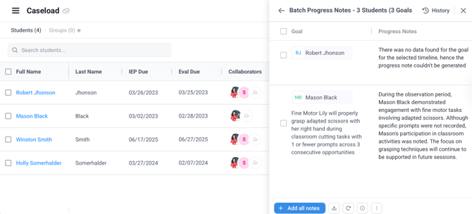 - Select Batch Progress Note in the AbleSpace AI Panel.