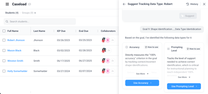 To create IEP goals using AbleSpace’s intelligent assistant: