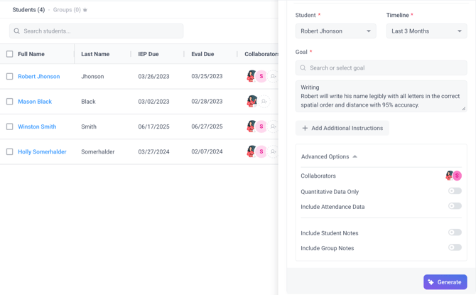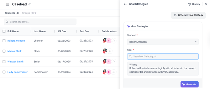 - Select Generate IEP Goal in the AbleSpace AI Panel.