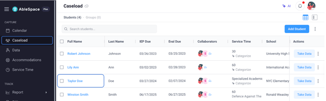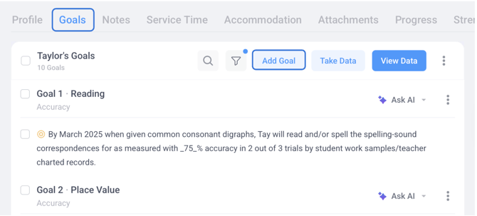 - Select a Student from the Caseload: Start by choosing the specific student for whom you wish to set up the goal.
