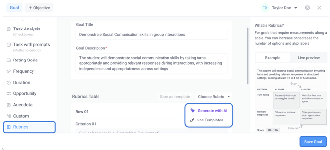 - Save Goal: Finally, click the "save goal" button. Your rubric-based goal will be successfully set up and ready for data collection.