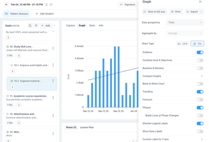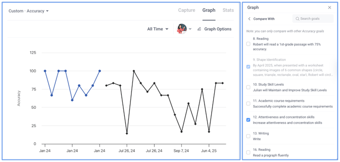Able Space’s advanced graph tools help you customize, analyze, and present student progress with greater clarity and control. This guide walks you through how to use each feature effectively.