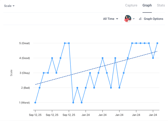 Toggle on the “Trend Line” feature to instantly view overall progress patterns.